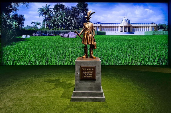 Moridja Kitenge Banza’s Once Upon a Time, Malaika at VOX, plays with history in a way meant to encourage youth to critically examine the stories they are fed. As seen through the eyes of the time-travelling character Malaika, historical narratives are revisited through a decolonial lens and presented as if a museum exhibition. Rather than dedicating statues to colonizers, one is dedicated to Malaika. Rather than showing artefacts stolen, items like a borderless map and medicine bag are shown, giving the glory to decolonial narratives.