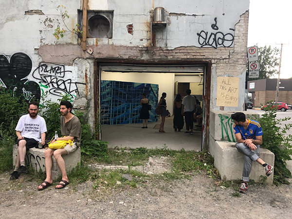 This is as much a goodbye as it is a review. Let’s start at the beginning, well actually 3/4 of the way through, in late October of last year. I had just returned to Montreal after working in Winnipeg for two years and Abbas Akhavan was opening his solo show Folly at Vie D’Ange, a defunct mechanic shop turned DIY gallery curated by Daphné Boxer and Eli Kerr. At the opening, conversation gravitated towards the gallery’s new neighbor: a looming concrete skeleton that, while structurally beautiful in its rudimentary state, was devastating in its implications as the future home of Microsoft and Artificial Intelligence agencies. In April Vie D’Ange hosted a Spring Reading organized by Loretta Lamargese and Rosemary Flutur. During a break I asked Eli, “What’s next?” He discussed some plans for what would likely be a final show, but nothing was confirmed. In mid-July, their Instagram account announced that the inevitable finally happened: the building has been sold and would soon be demolished. The pronouncement of the fated demolition was paired in dramatic crescendo with the reveal of their closing exhibition: Condemned, a solo show with a solo work, Condo 88.9, by Toronto-based artist Alan Belcher.