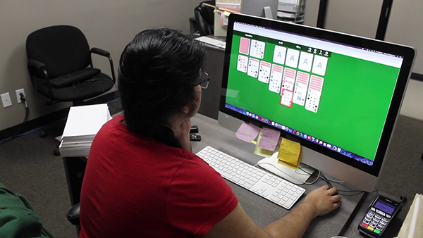 Back in the nineties, before we had an internet connection, I would spend hours playing Solitaire on our boxy computer – a habit I’ve kept alive sporadically over the years. While there are a number of other games dedicated to the solitary player, Solitaire has been more visible in popular culture over the years, especially with its computer version being a staple of bored office workers and grandparents everywhere. Another name for Solitaire is “Patience” – an apt description of gameplay. I find the concept of the unsolvable game particularly interesting because after all the “patience” and careful planning you may put into a game of Solitaire, you can still end up with a deal that was unsolvable from the start. For my residency at Latitude 53, one of the first actions I took was to set up a game of Solitaire for visitors. Every visitor is allowed only one move per visit and the game is to be played collaboratively, accepting and anticipating the moves of strangers, whether good or bad, in the true spirit of Patience.
