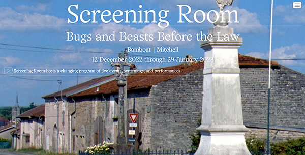 Bamboat | Mitchell, detail view of Before Law featuring the Screening Room with forthcoming programs, 2022 (courtesy: the artists)