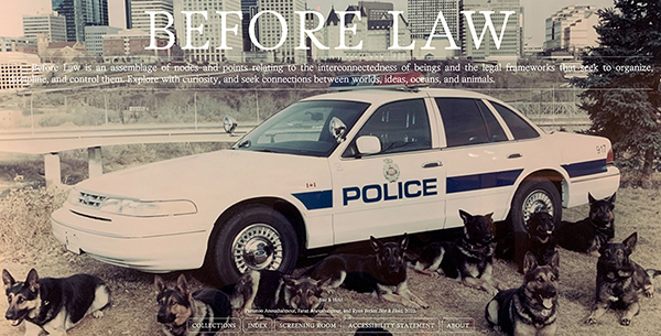 The opening gambit of this whole enterprise is Bamboat | Mitchell’s 2019 film Bugs and Beast Before the Law, which looks at the history of actual legal trials of non-human animals. The works found in Before Law extend this investigation into the realms of post-colonialism and post-humanism. Emilia Beatriz’s video A Crossing (1698/2003) combines text, landscape footage, and sound design to recount Scotland’s colonial efforts in the Caribbean. Sarah Keenan’s essay Objects with Personality addresses ambiguities in the legal status of subjects and objects, property and personhood, by asking the question, among others, “Do ships have personalities?”