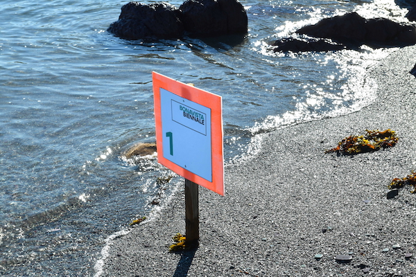 Bonavista Biennale signage for Site 1, Keels Cove (photo: Brian Ricks; courtesy of Bonavista Biennale)