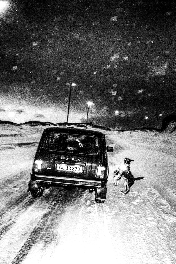 Storch lives and works in Greenland, and a lot of his photos in this exhibition showcase the icy terrain there. Because they are all black and white, a coldness seeps into the experience of viewing them. A picture of a children’s play set looks almost abandoned in its loneliness. On his website, Storch clarifies that this collection, titled Necromancer, is meant to convey a post-apocalyptic feeling inspired by the pandemic.