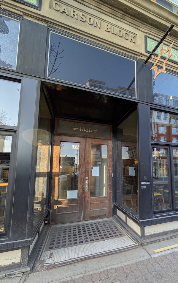Front door of Carson Block, home of Crawlspace, 2025 (photo: Sage Deems)