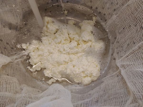 I tried my hand at making fresh cheese and was surprised at how easy and calming the process was. The whole milk is gradually heated over the stove and needs to be stirred constantly so it will not burn. When the milk reaches its boiling point, lemon juice is added, and the milk curdles to reward you with a cheese bloom! After a gentle squeeze in cheesecloth and a rinse under water, you have fresh cheese.