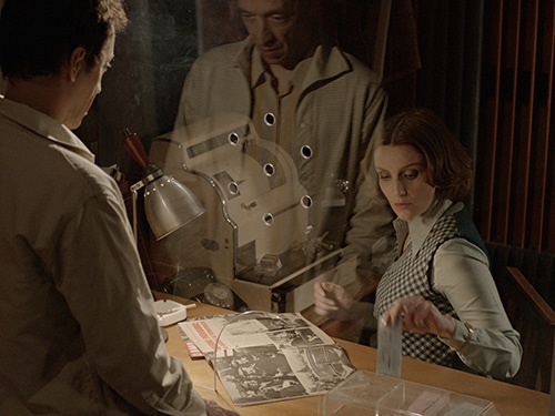 It would take my entire word count to list the names of all of the artists included in the inaugural exhibition. Grandiose, expansive, and largely excellent, Field Guide plants a flag for the museum’s envisioned place in the world. Recent acquisitions such as Stan Douglas’ non-linear, multichannel video installation The Secret Agent, Anton Vidokle‘s captivating video exploring the history of Russian cosmism The Communist Revolution was Caused by the Sun, and Gander’s remarkable conveyor belt-powered sculpture peep show rub shoulders with modernist works inherited from the collection of the Mendel Art Gallery (the gallery out of which Remai grew). Vibrating with hopeful shades of pink and violet, Eli Bornstein’s Quadraplane Structurist Relief, No. 15 is a hopeful talisman for this new museum. Now in his nineties, he bridges past and present, having participated in the first exhibition at the former Mendel Art Gallery as well as this one.