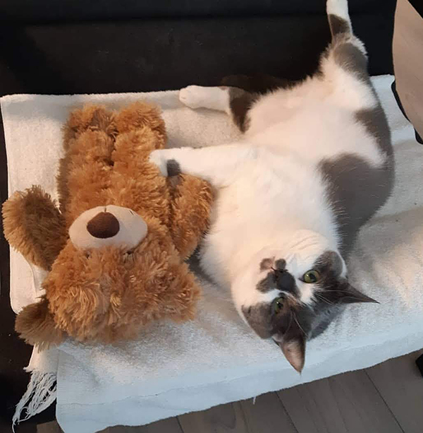 I am inspired by my therapy cat Patches. I rescued her from a shelter in 2018 after undergoing ovarian cancer surgery and struggling with anxiety from a horrific living situation. I really believe she rescued me because she has been extremely therapeutic in helping me relax with my mental health issues.
