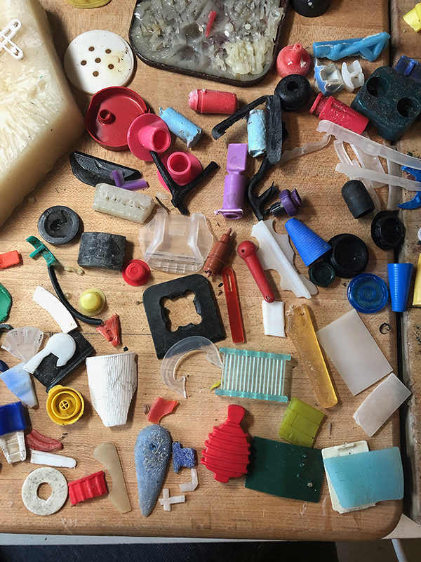 I’ve been working with plastic trash as my primary medium since around 2017. Collecting, sorting, and organising bits of cultural effluvia helps me to develop an intimacy and familiarity with materials, and see details in form and beauty that would usually be invisible.