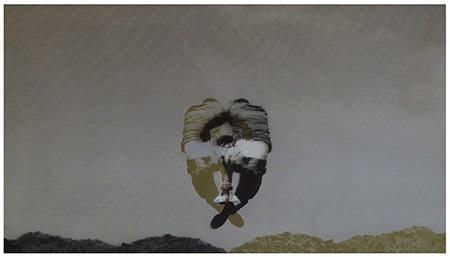 Abraham Oghobase, digital negative placed on lithographic print on paper