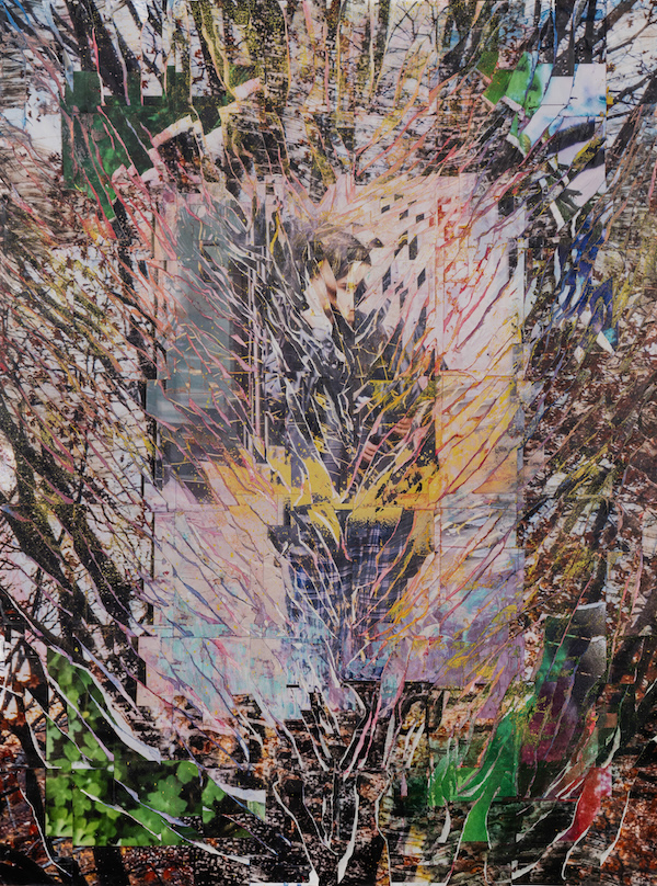 Mehdi Dandi, Self Portraits #4, 2024, décollage of 250 chromogenic prints, acrylic paint, spray paint (courtesy: Stephen Bulger Gallery)