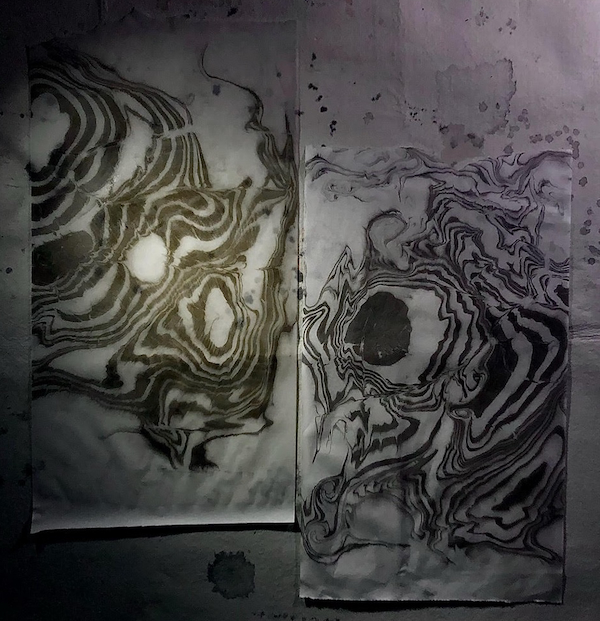 Thanks to the Wet Signal exhibition, my interest in Suminagashi (paper marbling) has been revitalized. I love working with this medium, and I’m even more excited to experiment with “hydro acoustics” where I paper marble with sound waves made from music I’ve produced!