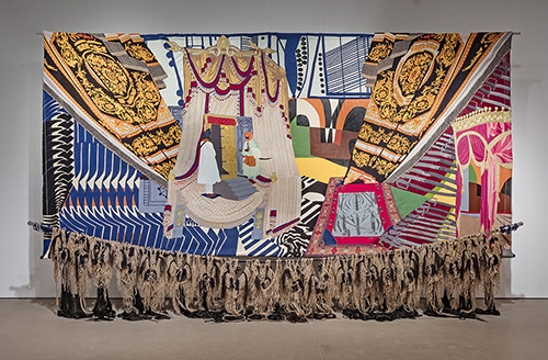 Nep Sidhu, Medicine for a Nightmare (from the series When My Drums Come Knocking, They Watch), 2019, cotton, wool, jute, zari, hair, steel (photo: Toni Hafkenscheid)