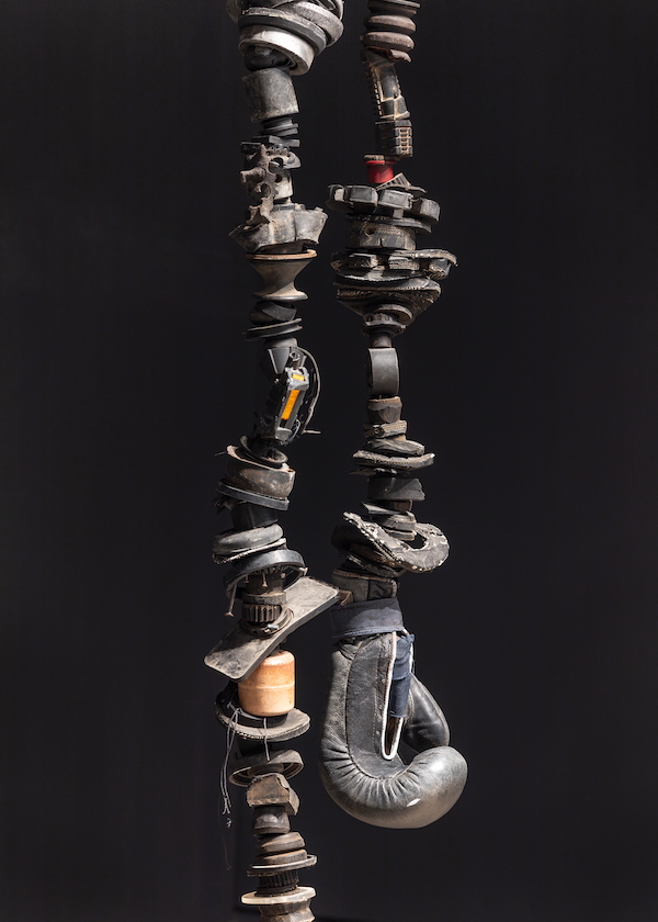 Oluseye, Muhammad Had A Dream, 2021-2024, boxing gloves, rubber, found objects (photo: LF documentation; courtesy: the artist and Daniel Faria Gallery)