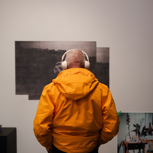 Gallery visitor in The Hungry Mist (A Névoa Faminta) group exhibition, 2023