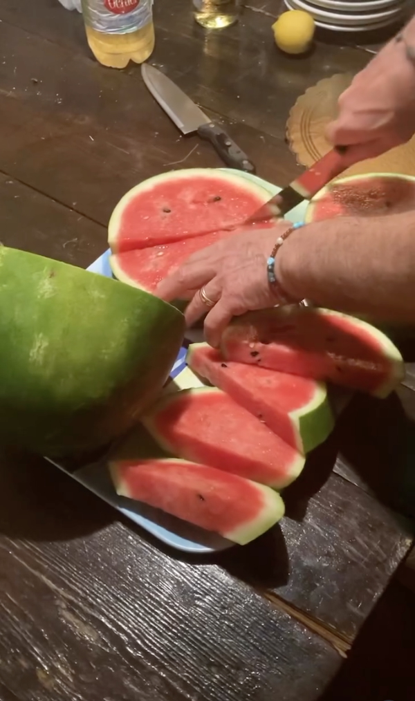 I used to make it with my mamma, and it was my nonna’s favourite. You pass watermelon through a sieve. Pick jasmine blossoms from bushes around town at the height of summer, and let them relax in the juice for a day. Cook the juice with cornstarch and sugar. Top it with chopped dark chocolate and pistachios to symbolize the seeds. But I can’t find the right jasmine here in Vancouver!