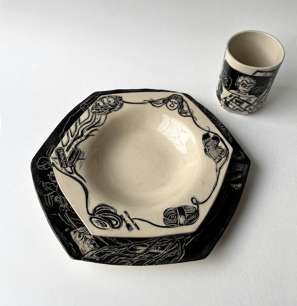 Evelyn Roitner, Parents – Plate, bowl, cup set, 2023