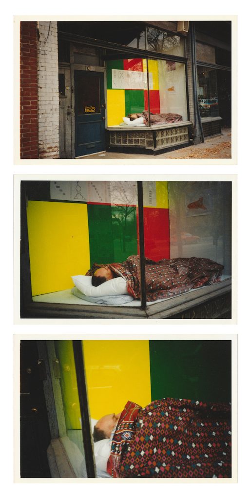 Andrew James Paterson, Symptoms of Whatever, 1998, photo documentation for a performance at Zsa Zsa Gallery