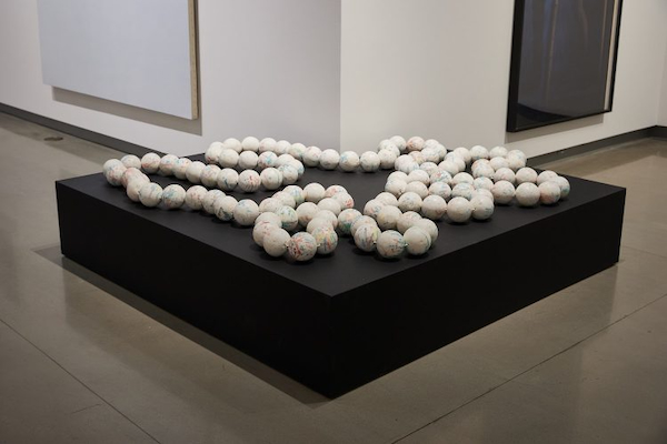 Deborah Margo, Necklace, 2023, sugar balls and cord, part of Art School Confidential at the Ottawa Art Gallery (photo: Rémi Thériault)