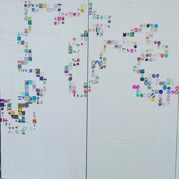 I also facilitated a weekend-long experiment at Maker Festival called Connect the Dots where visitors helped create a large-scale painting of a random walk. Throughout the festival, the chain of dots lengthened and changed direction, continuously altering the work. The final painting never had a central designer or maker, having been shaped by the crowd. By the end of the festival, over three hundred participants had contributed to the piece. The contributors subverted the rules early on, contributing individual drawings instead of solid dots, which was an interesting and completely unanticipated development.