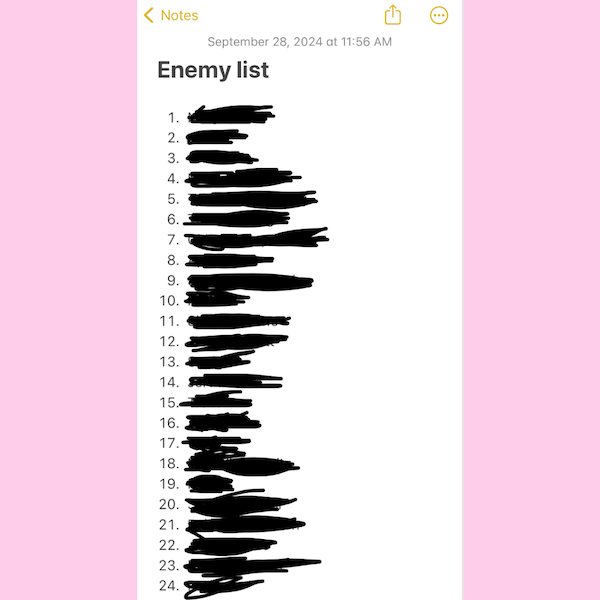 I think a lot about gossip, and the idea of gossip finds its way into my art practice often. I’ve been thinking a lot about a related idea lately: revenge. The idea of sharing information about someone who’s harmed us and then feeling the desire for an equal hurt to be placed upon them. An art piece at the organisation I work for was targeted by transphobic graffiti, so I’ve been ruminating on what revenge really means. I’m an abolitionist through and through. But I’m also a Scorpio! I can’t help but hold a grudge! I don’t want the world to be punitive. But I will always remember the harm you did to me or to someone I love. I might also relish in your minor misfortunes. I don’t know what the right answer is. It’s a complicated thing.