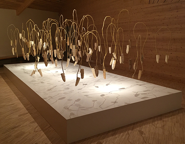 Sonya Kelliher-Combs, Idiot Strings: The Things We Carry, 2018, reindeer and sheep rawhide, wool, steel wire, nylon thread, beeswax.