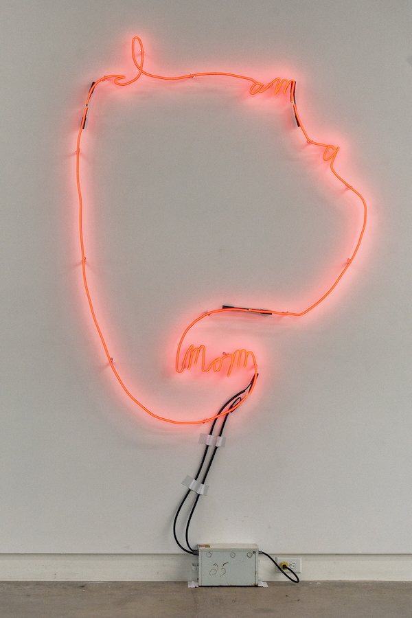 Sheilah ReStack, I am a mom, 2024, neon sign (courtesy: The Blue Building Gallery; photo: Ryan Josey)