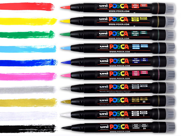 When Sharpie quit making their acrylic paint markers that I’d been using for several years, I was devastated. Then I discovered Posca Paint Pens from Japan. With a wider range of tip sizes and colours, high pigment concentrations and smooth consistent flow, these pens are like candy and I have a sweet tooth. This is not a paid advertisement.