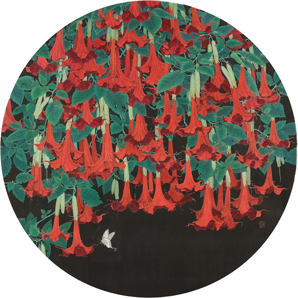 Kejie Lin, Red Mandragora, 2022, ink and mineral pigments on rice paper, 120 cm diameter. Courtesy of the artist.