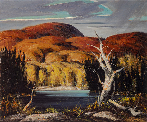 J. S. Hallam, Quiet Pool, Algonquin Park, 1949, oil on panel, 51 cm x 61 cm. Collection of the Varley Art Gallery of Markham. Purchased by the Varley-McKay Art Foundation of Markham, 2001.