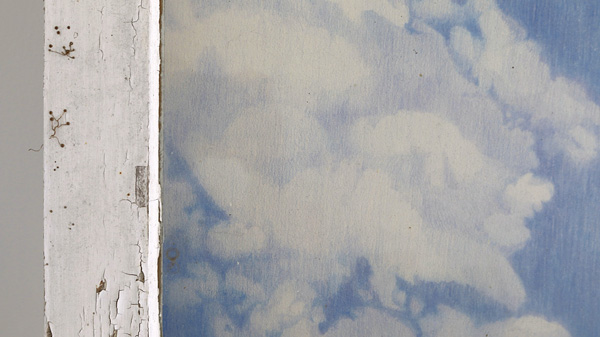 Hal Fortin, Accumulation (detail), 2025, found windows and pencil crayon on rag paper, dimensions variable. Courtesy of the artist.
