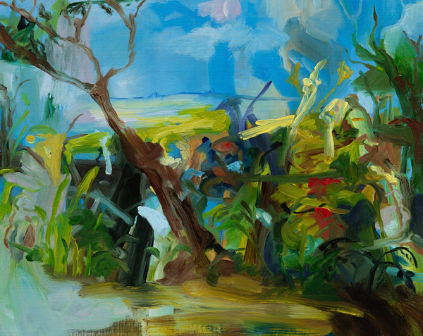Natasha Verbeke’s paintings of lush gardens and landscapes consider how their often violent histories of creation and occupation can be reimagined as sites of hope and renewal. Drawing from a sieve of art historical sources, she engages in a layered dialogue with the Western canon and its traditions of landscapes, turmoil, and drama—at once acknowledging the artistic proficiency of the “old masters” while critiquing the power structures that underpinned the creation of their work.