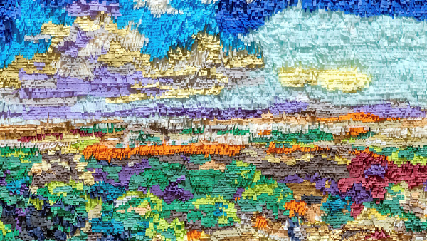 Image credits: Justin Favela, Valle de México Tomado en las Cimas de Tepeyac, After José María Velasco I (detail), 2024, paper and glue on canvas. Collection of the artist; Do You Remember Love (installation view): Susan Mogul, I Stare at You and Dream, video, 1997, video, 56:40 mins. Courtesy of the artist and Video Data Bank at the School of the Art Institute of Chicago; selected quillboxes from the Museum on Tower Hill collection (signed quillboxes by Rose Rice and Jane Pegahmagabow; unsigned quillboxes by Anishinaabe Great Lakes artists), 2oth c., porcupine quills, birchbark, and sweetgrass. Photo: Toni Hafkenscheid; Shuvinai Ashoona, Inside the Mountain (detail), 2020-2021, hand-coloured lithograph. Purchase, 2023. Art Gallery of Guelph Collection.