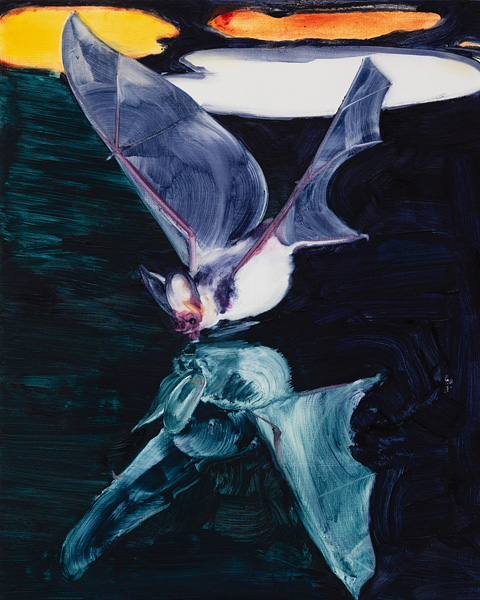 This solo exhibition features recent paintings by Toronto-based artist Laura Findlay. Findlay’s sweeping, gestural brushstrokes capture a breadth of subject matter—from bats and butterflies to bramble bushes—habitating nocturnal ponds and gardens. These are often set against elements of the built environment in the city or suburb, creating dynamic tensions between flora, fauna, and human presence. Both a painter and a professional photographer, she maintains an evolving relationship with light, which materializes in paintings that capture momentary illuminations enveloping both creatures and plant matter. Each painting employs Findlay’s dynamic subtractive process, in which she quickly removes pigment and glaze layer by layer to build distinctive, high-contrast images. At once haunting and beautiful, her works reflect on the natural rhythms of the seasons and the renewing cycles of life and death.