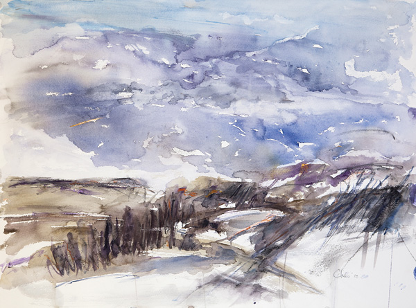 Chelo Sebastian, Near Sudbury, ON II, 2013, watercolour, graphite, and pastel on paper. Image courtesy of the artist.