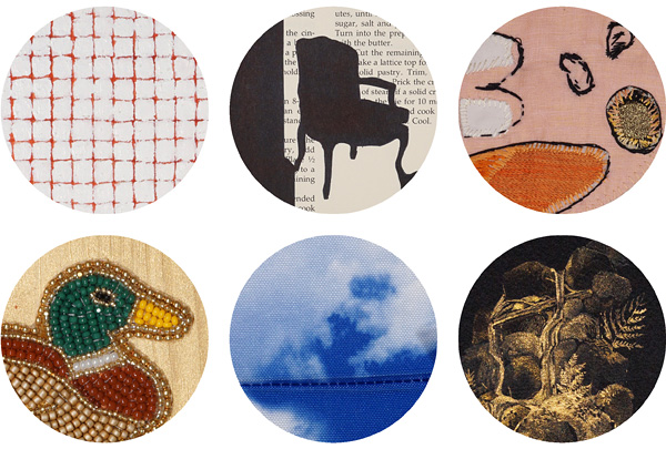 All images are details from larger works. Top row (left to right): John Murchie, Sackville #63 (Red Painting), 2024; Tonia Di Risio, Cherry Tart, 2023; Anna Torma, Untitled, 2021. Bottom row (left to right): Emma Hassencahl-Perley, i love you so ducking much, 2023; Erik Edson, tag, 2024; D’Arcy Wilson, Burble, 2023.