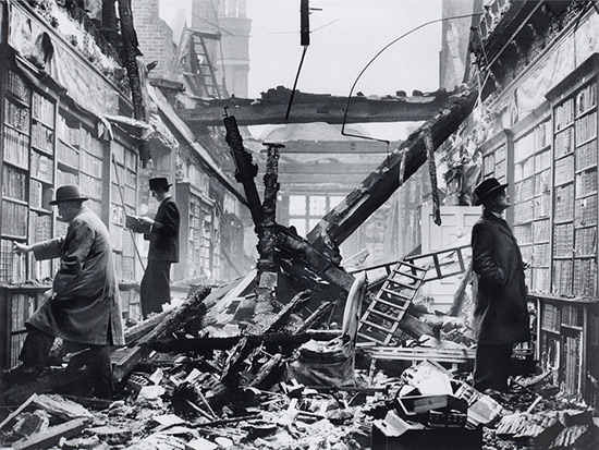 Photographer unknown, The Library of Holland House Library, Kensington, London, after air raid, 1940