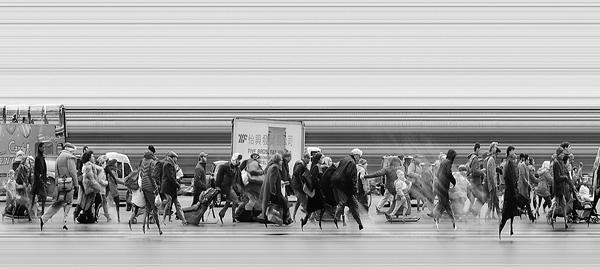 Magyar is captivated by high-tech cities and urban life. He depicts the synergies of city life while embracing it as home to both people and technology. With each of his series, he observes the flow of time, scrutinizing the transience of life and humans’ inherent urge to leave some trace behind. Magyar is keen on adopting and reinventing contemporary devices like industrial machine-vision cameras in order to produce his unique view of the human experience. Magyar stated, “I study our relationship to past, future and present moments, reflecting upon the way we use and misuse time.”