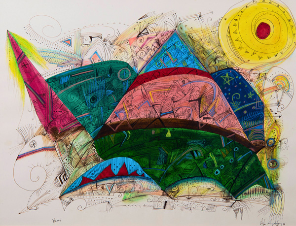 Alan Syliboy, Home, 1999, pencil and acrylic on paper. Collection of Marcia Hennessey.