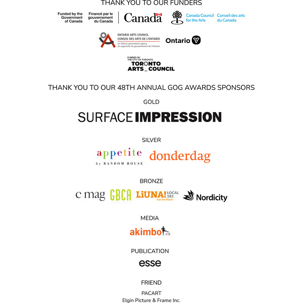 Galeries Ontario / Ontario Galleries (GOG) is pleased to announce the 48th Annual GOG Award Winners!