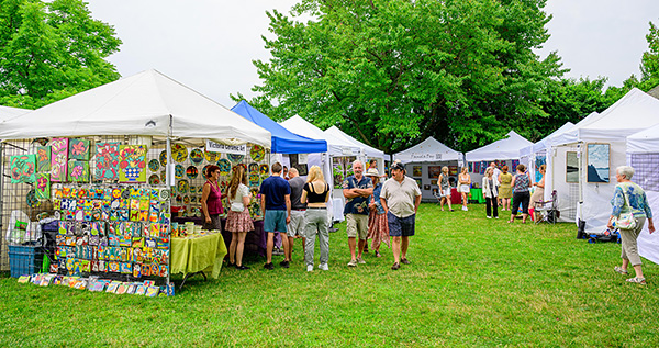 Visitors stroll through artist booths at the outdoor show, admiring original works & engaging with artists and artisans. Photo: Dave Van de Laar