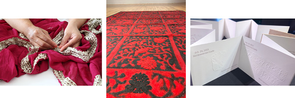 This year’s juried show award winners (left to right) – First prize: Sumaira Tazeen, (Dis)Entangle, 2024; Second prize: Raha Fard, The Routes of Blood 2, 2024; Third prize: Wen Li, Tangible Experience_England, 2023.