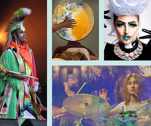 Images (clockwise, from top left): Possesom Paul, Keynote Speaker at the Arts Atlantic Symposium 2024. Deanna Musgrave’s Harmonious Convergence: Art and Wellness. Justin Toodeep in Drag Artists Unite! Martin Daigle’s Drum Machines.