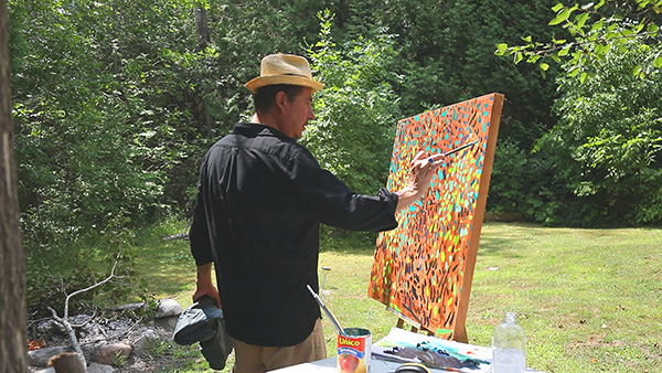 Bewabon Shilling painting en plein air at his home in Rama first Nation.