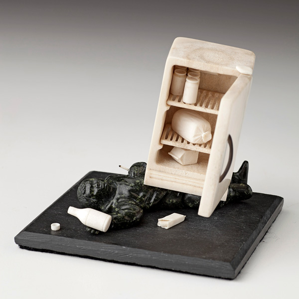 1. Billy Gauthier, Northern Frigidaire Diet, 2012. Serpentine, antler (Moose and Caribou), Muskox horn, slate. 8.9 x 10.2 x 8.9 cm. Collection of Chris Bredt and Jamie Cameron. Photo courtesy of Nigel Reading, formerly of Spirit Wrestler Gallery.