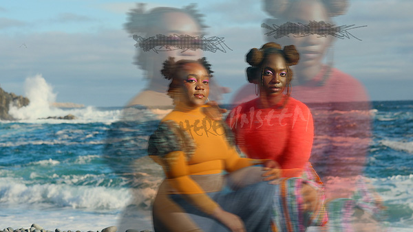 Brian Amadi, Middle Cove Beach, 2025, digital image featuring Kabaso and Jessica. Courtesy of the artist.
