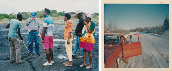Images (left to right): Grandmother’s family visiting the La Brea Pitch Lake, Trinidad in the early 2000s. Grandfather driving a new car in Fort McMurray, Alberta in the mid-70s.