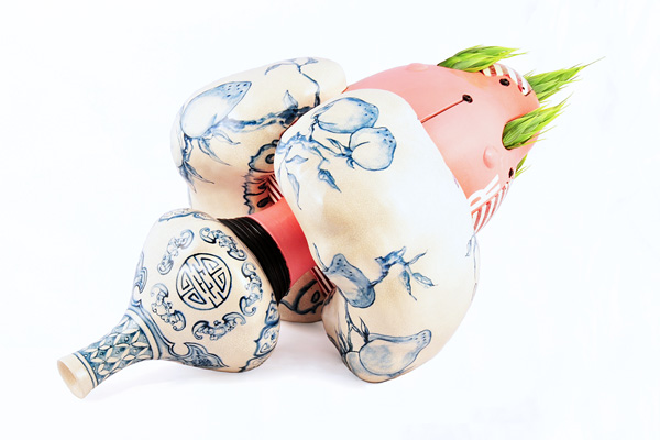 Brendan Lee Satish Tang, Manga Ormolu Version 4.0r, 2013, Ceramic and mixed media, 16 x 13 x 20 inches. Purchased in part through the support of the Elizabeth L. Gordon Art Program, a program of the Gordon Foundation and administered by the Ontario Arts Foundation.