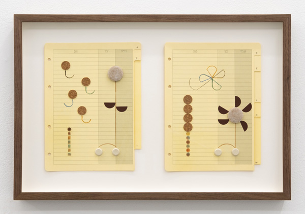 But what about the early stages of recognizing that these principles exist in the world, in and out of view, like a latticed network? Bronson Smillie seems to enact this in his solo exhibition Almost Begin: the stage where crude, exploratory creation and the imminent graduation into a more developed thinking meet and grapple with one another. The verb ‘enact’ is key here, as he possesses an aptitude for refinement and the decipherment of nuance, which makes what appears naive in his work a deliberate choice. The child-like objects and motifs—letter blocks, encyclopaedias “de la jeunesse”, line drawings of a house—are present to convey a mind in the midst of crucial development, like a kid on the brink of adulthood. But the movement towards greater thinking is the main point. The works suggest they are the products of a young, forming mind actively parsing and processing the underlying abstract concepts that make up what we sense and know.