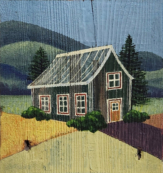 © Naomi Lane, Heritage Building on Reclaimed Wood, acrylic on wood. Courtesy of the artist.