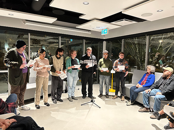 Creative Writing MFA students offering a reading at an open house event, winter 2025